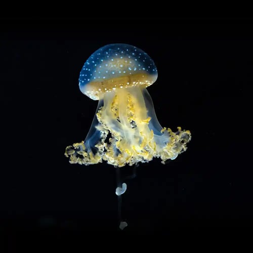 Jellyfish are delicate and elegant creatures with their graceful movements and mesmerizing translucence. Watching them swim is like being taken away to an otherworldly place - truly an amazing sight to behold!