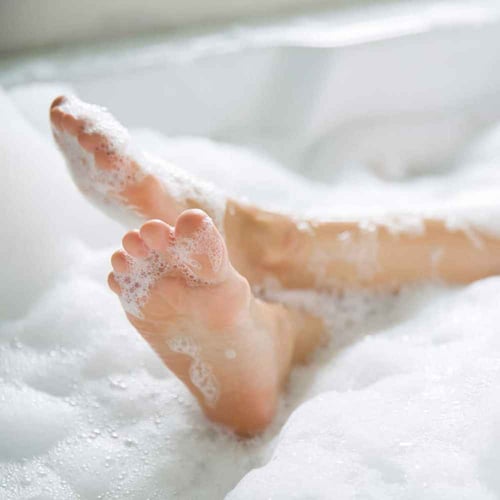 While you’re in the tub, give yourself a pedicure! Gently scrub away dry skin with a pumice stone and apply a moisturizing foot cream or lotion to keep your feet soft and smooth.