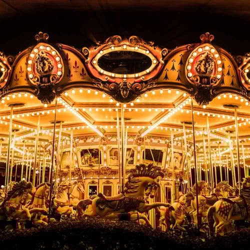 The sights, sounds and smells of a classic merry-go-round bring back feelings of nostalgia for many people. It's a reminder of simpler times and brings us joy with its cheerful music and bright colors. There's nothing quite like it!