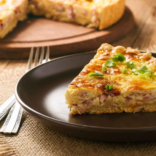 The combination of bacon and Gruyere cheese gives quiche Lorraine a hearty, savory flavor. Add some garlic and onions to really bring out the flavor - or get creative and add any other herbs or spices you like!