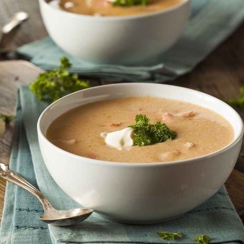 Seafood bisque is not only incredibly flavorful but also very nutritious! The combination of vegetables, stock, cream and seafood provides you with a wholesome meal packed full of nutrients like vitamin B12, omega 3 fatty acids and essential minerals.